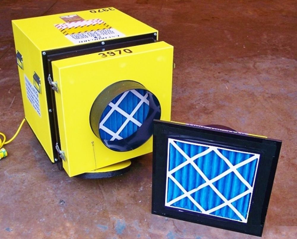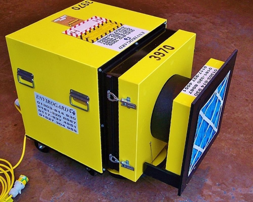 It is mounted on castors for manoeuvrability, but handles allow it to be carried where necessary. Equipped with a HEPA filter it is capable of moving up to 1800m3/hr (1050 CFM) of air.