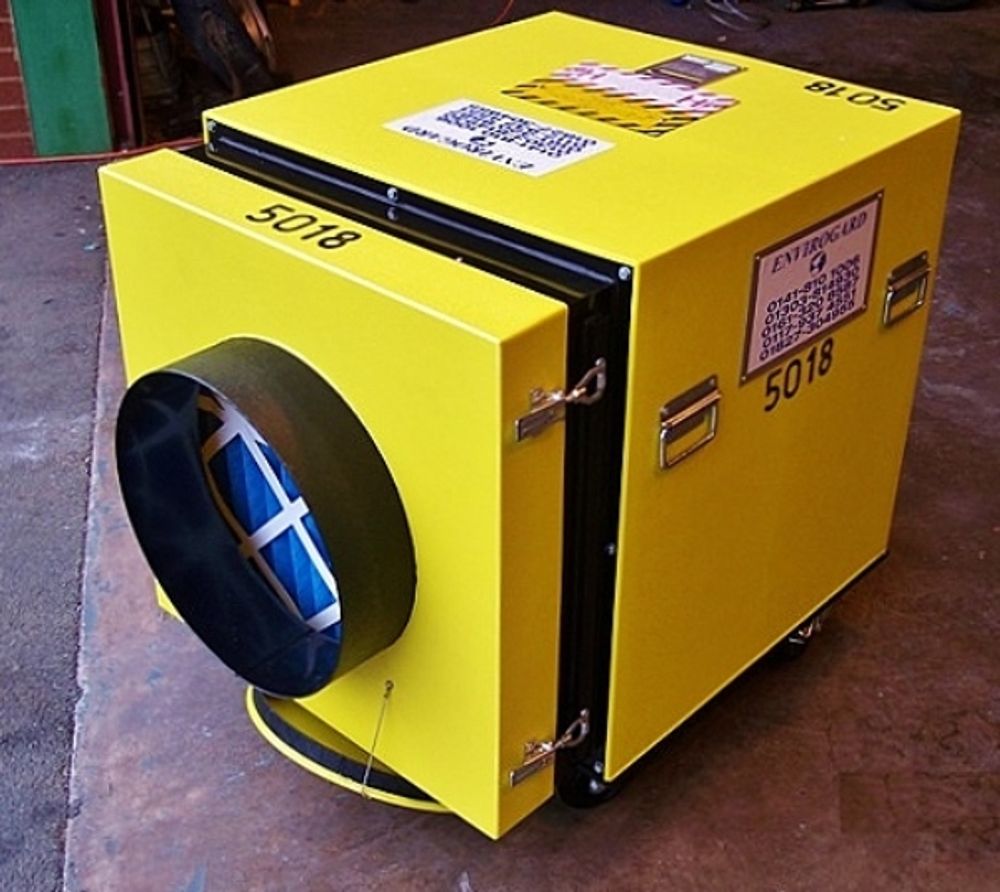The DFU 5000 is a high capacity dust-filtration unit which is equipped with two independently switched motors, allowing the user to select full-capacity or half-capacity operation. Mounted on castors it can easily be manoeuvred, and carry handles allow it to be lifted over rough ground.