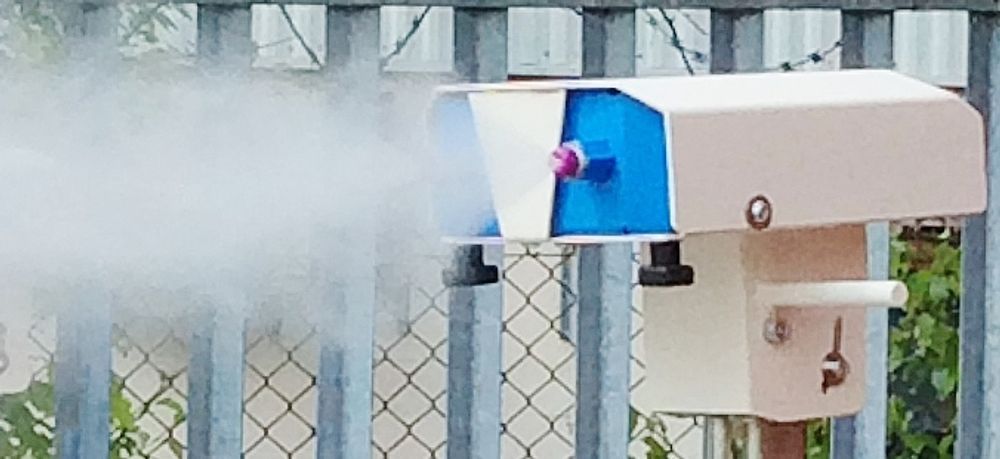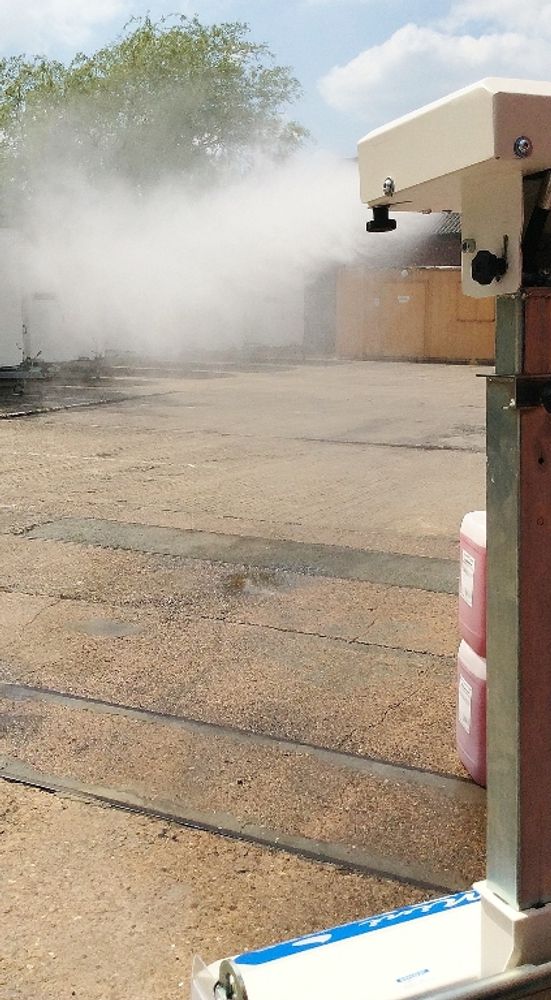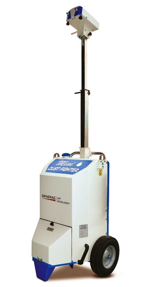Its telescopic mast, the tilt facility of the mist head, and its integral pump allow a fine water mist to be delivered up to 8 metres and - depending on mist nozzles selected - it will run for up to 5 hours between refill.