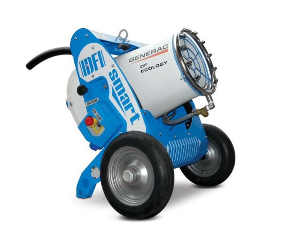 As with all our equipment the DF Smart is “roll up, plug in, and switch on” requiring only connection to 110v power and a water supply. The DF Smart can also be used for cooling purposes, or without water misting simply as a high capacity ventilator.