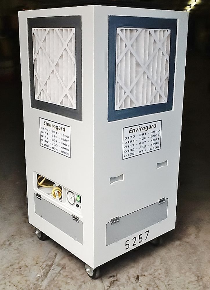 The pre-filters remove the larger airborne particles, before air is drawn down through an integral High Efficiency Particle Attenuation (HEPA) filter to remove the very fine particles.