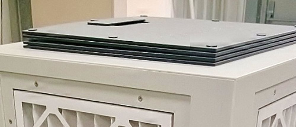 The Scrub-Aire draws contaminated air through pre-filters located on each face of the machine; each pre-filter is protected by a cover in transit.