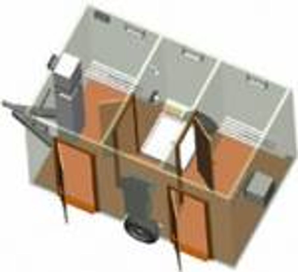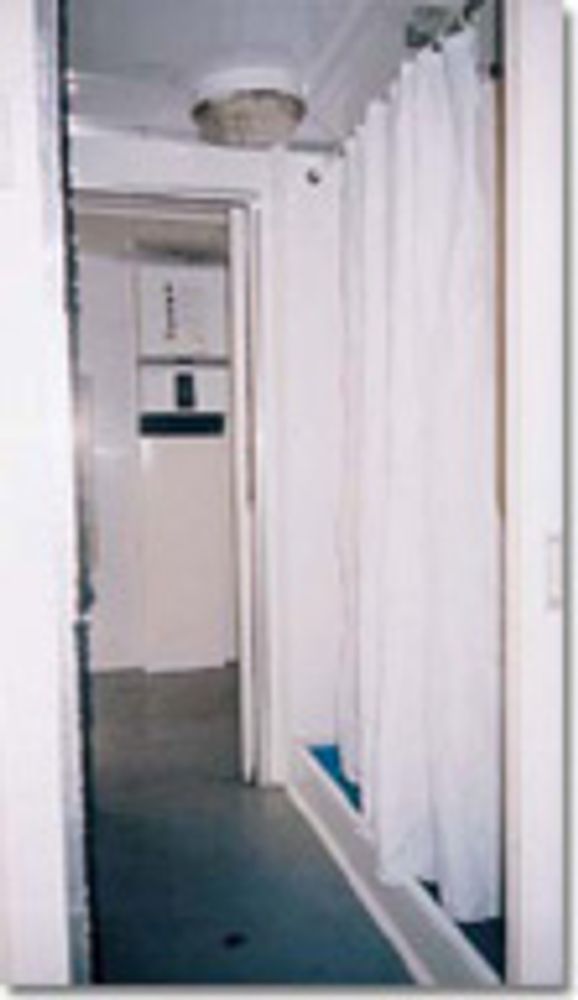 An integral LPG gas water heater provides copious amounts of hot water for the showers and wash basins. "Standard" units have a common shower area divided by curtains. Where internal heating, drying and lighting is required only a small power supply is necessary (240v 13 amp).