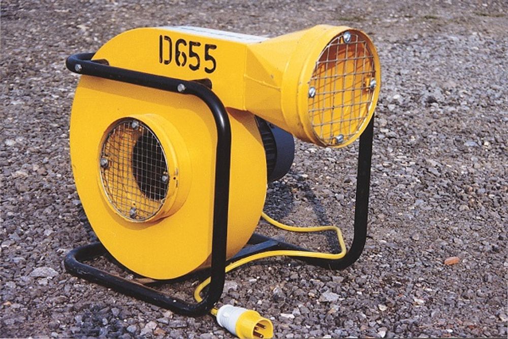 A medium volume ventilation fan for blowing or extracting air, fumes and light airborne dust. Flexible trunking is available to hire and a filter sock may also be fitted to the outlet spigot to entrap coarse dust. This centrifugal fan has a high suction capacity which makes it effective even for applications which involve long ducting runs.