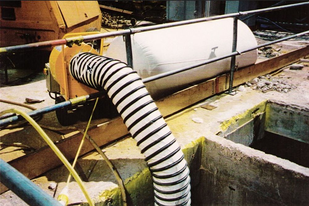 Flexible ducting is available to hire in 8 metre lengths, nominal 300mm (12") diameter.