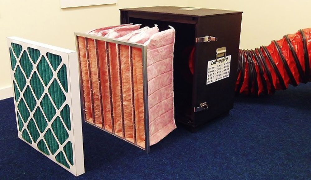 As an alternative the VS 3000 can be supplied with a high grade multi-pocket filter to capture medium to fine dusts (shown in pink in the images). The filter is held secure in a polypropylene housing which is lightweight and portable and which can be separate from the extract fan (using flexible ducting) - allowing the filter to be located close to the dust generating work while the fan is kept remote.
